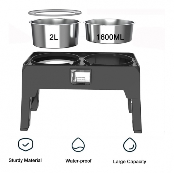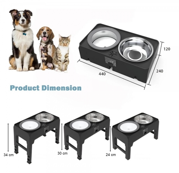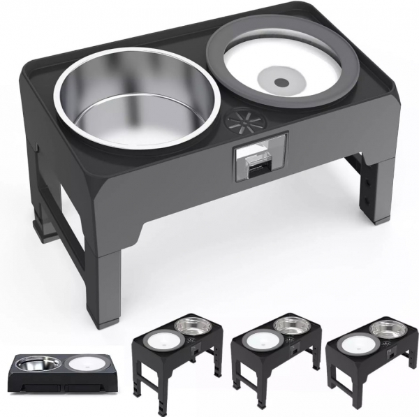Bol dublu hrana si apa pentru animale de companie, cu suport ajustabil, negru Vivo SY-097