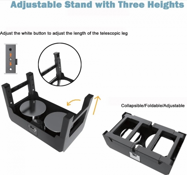 Design anti-alunecare - Picioarele suportului sunt echipate cu talpi anti-alunecare. Inaltime suportului poate fi reglata pe 3 nivele: 24 / 30 / 34 cm