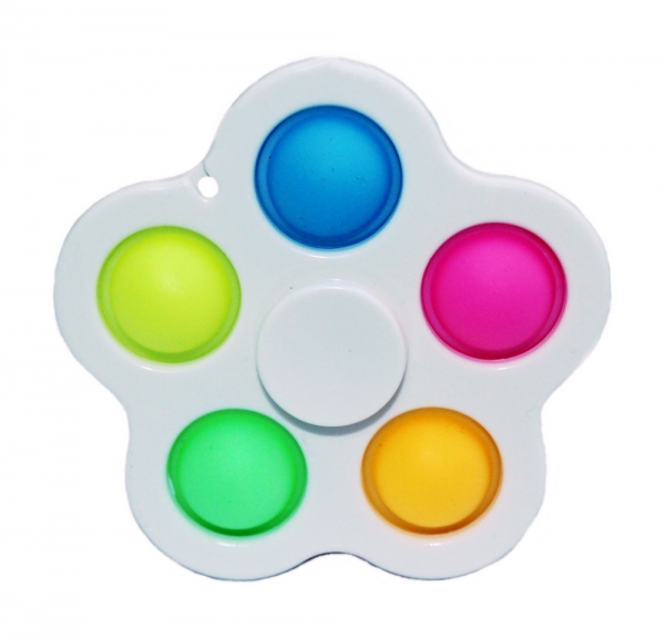 Breloc Fidget Spinner/Pop It, antistres, alb cu 5 buline colorate, 8 cm, Vivo, FIDGET-WHITE