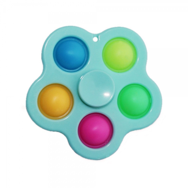 Breloc Fidget Spinner/Pop It, antistres, albastru turcoaz cu 5 buline colorate, 8 cm, Vivo, FIDGET-BLUE