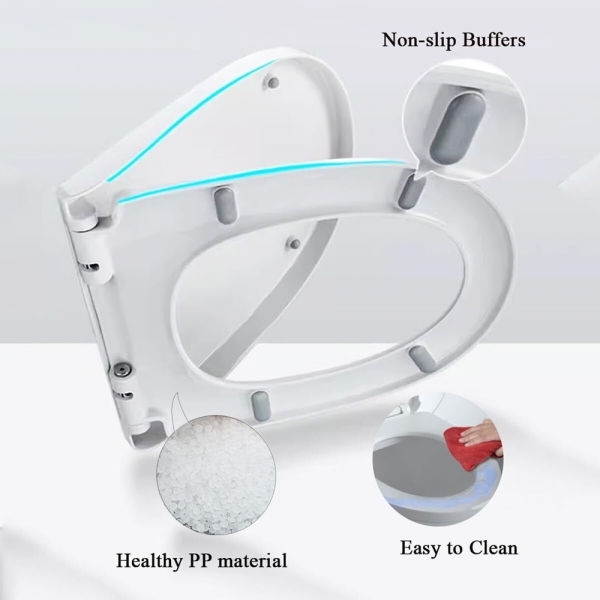 Eliberare cu un singur buton / usor de curatat: butonul de eliberare rapida face ca capacul de toaleta sa fie usor de indepartat, permitandu-va sa-l curatati temeinic. Pur si simplu apasati butonul pentru a-l scoate, odata ce ati terminat, capacul de toaleta pur si simplu se fixeaza la loc.