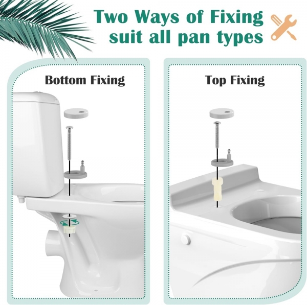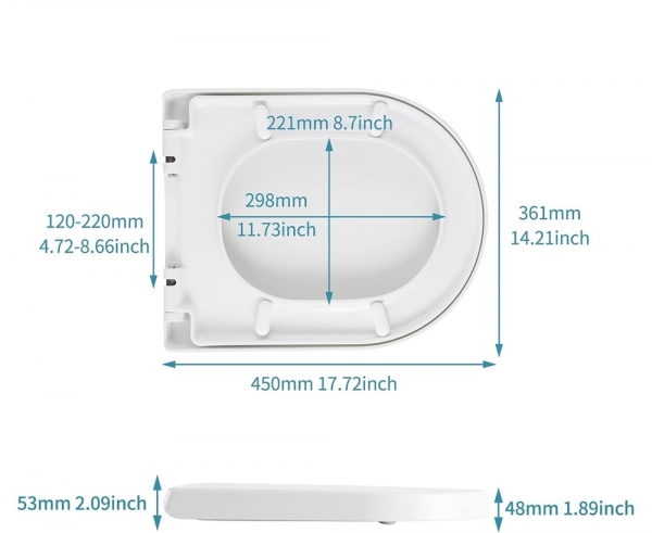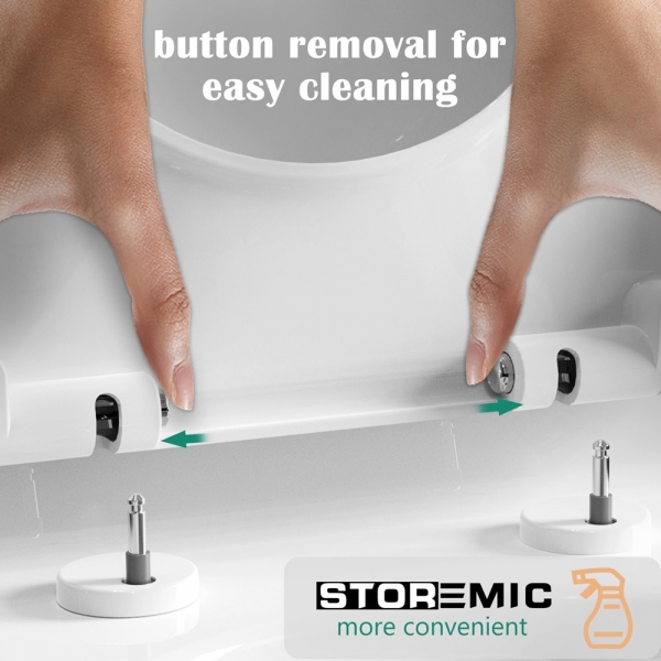 Eliberare cu un singur buton / usor de curatat: butonul de eliberare rapida face ca capacul de toaleta sa fie usor de indepartat, permitandu-va sa-l curatati temeinic. Pur si simplu apasati butonul pentru a-l scoate, odata ce ati terminat, capacul de toaleta pur si simplu se fixeaza la loc.