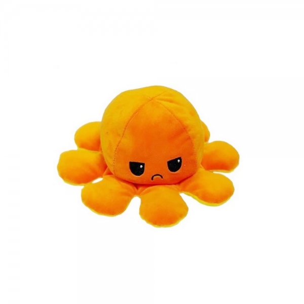 Aceasta caracatita fermecatoare de plus cu doua fete este o alegere perfecta pentru toate varstele. Datorita designului sau special, ii poti schimba cu usurinta culoarea si starea de spirit intorcandu-l pe dos. Pe de o parte gasim o fata razand si vesela, in timp ce pe cealalta parte o fata trista se uita inapoi la noi.