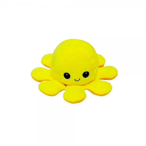 Caracatita reversibila din plus cu doua emotii, cu LED, galben/portocaliu, 20 x 8 cm, Vivo OCTOPUS-YELLOW/ORANGE