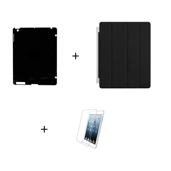 Carcasa de protectie Smart Case negru, pentru iPad 2 + 1 husa magnetica de culoare neagra si o folie de protectie iPad2