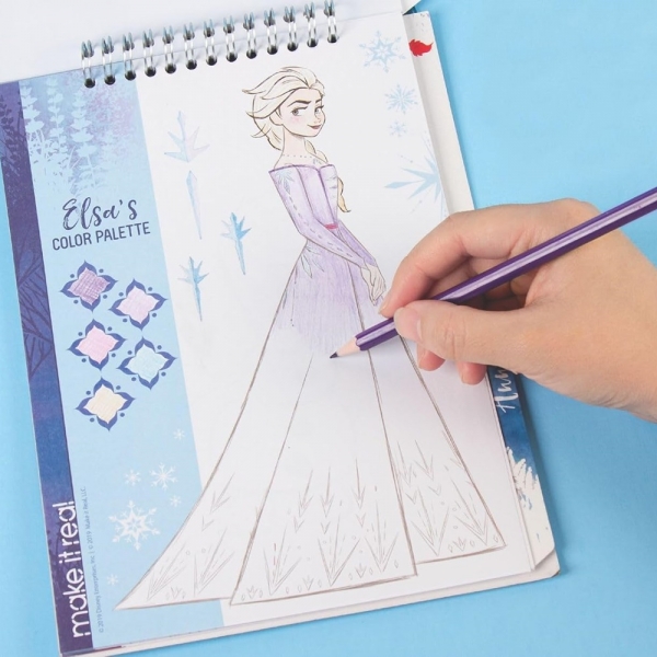 Cu acest caiet de schite Frozen, copiii pot crea o lume a modei si stilului inspirat de filmul de succes Disney.