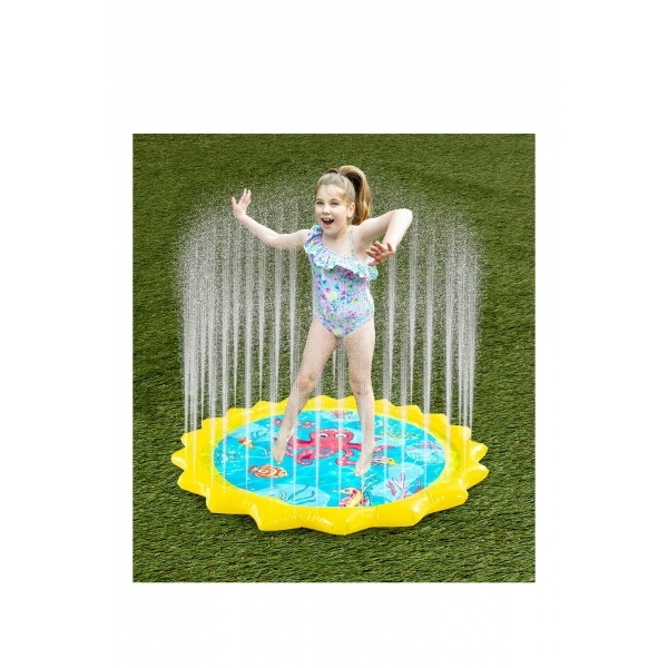 Covoras mare de joaca cu stropire cu diamtru de 170 cm/67 inch ofera suficient spatiu pentru ca 3-4 copii mici sa se joace imreuna.