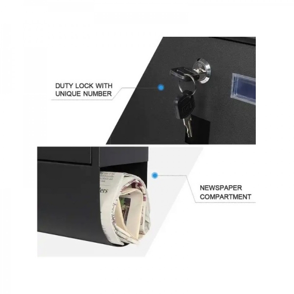 2 chei incluse: Cu doua chei incluse, aveti controlul asupra accesului la corespondenta dumneavoastra, asigurandu-va ca doar persoanele autorizate au acces la continutul cutiei postale. Constructia etansa face cutia postala rezistenta la intemperii, protejand astfel corespondenta dumneavoastra de ploaie, zapada si alte conditii meteo nefavorabile.