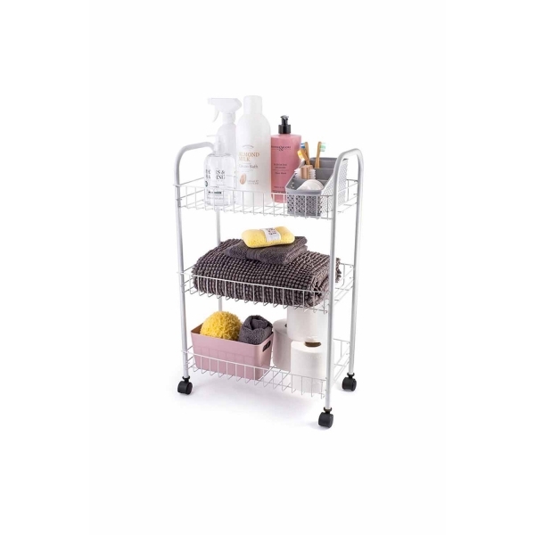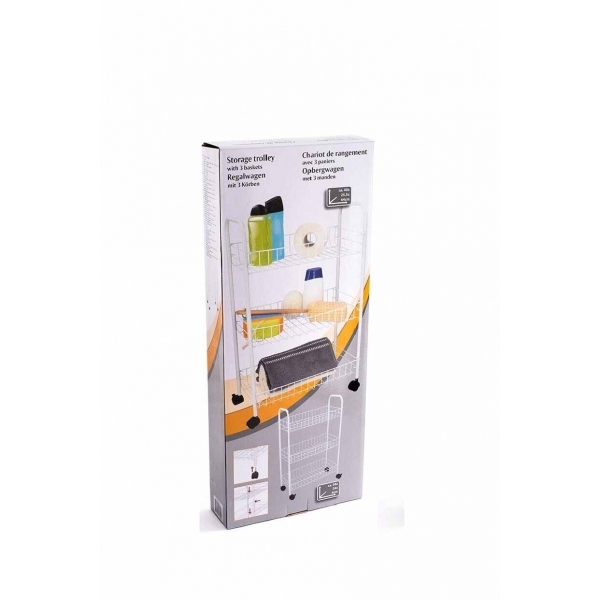 Etajera mobila cu roti si 3 rafturi, alb, 16209-WHITE