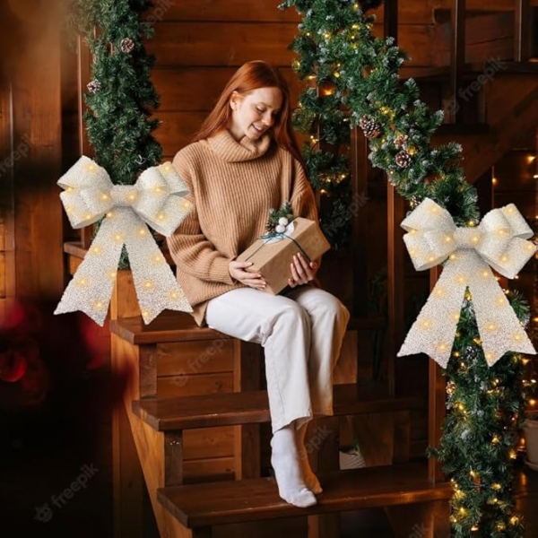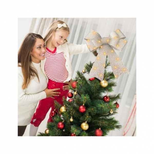 Functioneaza cu baterii: Ilumineaza-ti Craciunul cu funditele noastre LED care functioneaza cu doua baterii (nu sunt incluse). Funda noastra pentru brad de Craciun emite o lumina calda, sporind atmosfera de sarbatoare. Cand sunt aprinse, luminile ofera o experienta vizuala perfecta, mai ales noaptea. Cu efectul sau decorativ, creeaza o atmosfera calda si frumoasa de Craciun in spatiul tau.