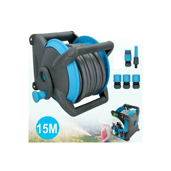 Furtun de gradina cu suport, 15M, gri/albastru HP-122