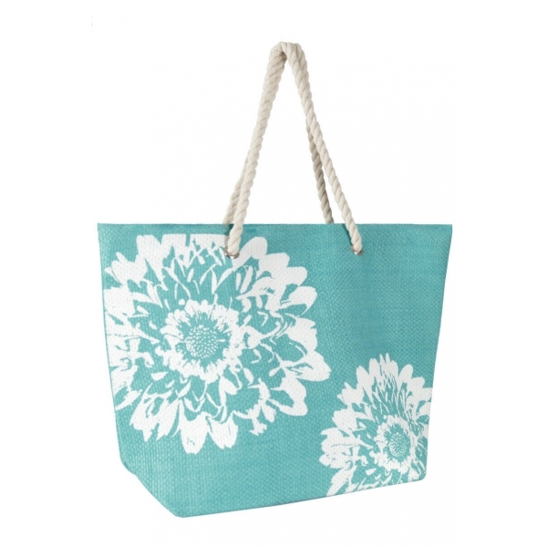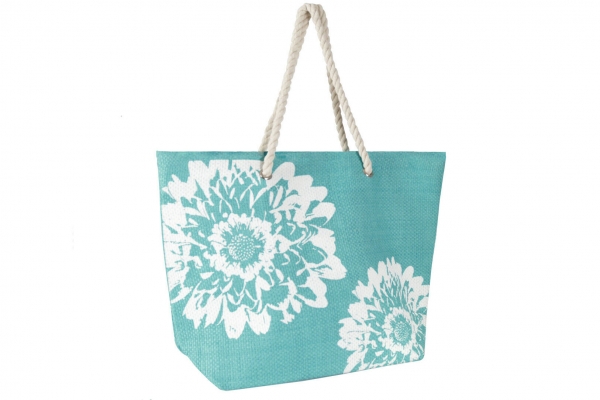 Geanta pentru plaja, turcoaz cu flori, 46 x 34.5 cm, Vivo