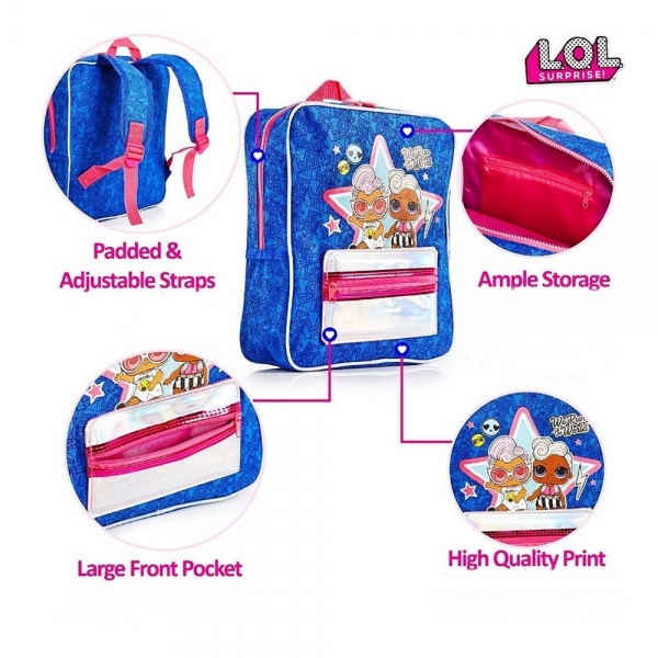 Ghiozdan copii, bretele ajustabile, albastru, 32 x 9 x 26 cm, L.O.L. 42-0050