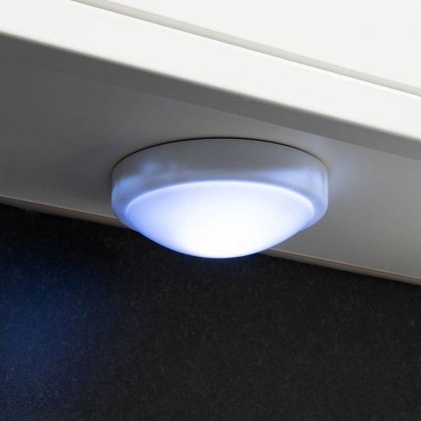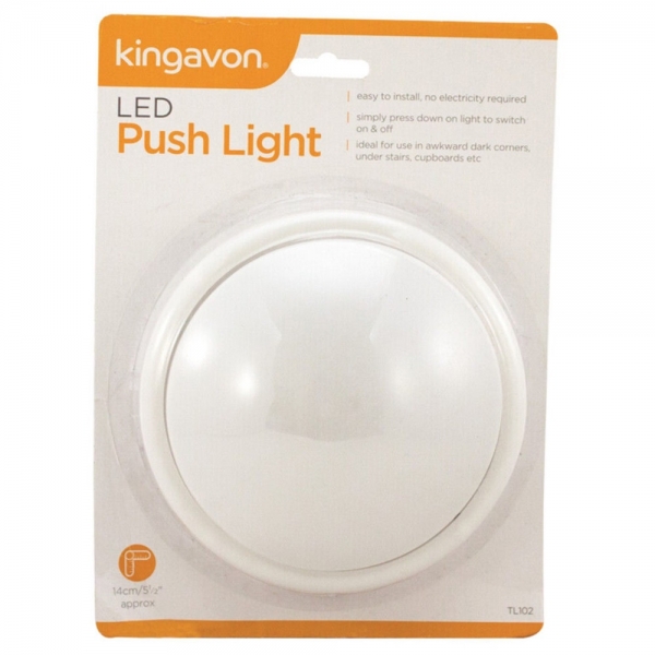 Lampa LED rotunda, din plastic, cu economie de energie, care poate fi activata prin apasarea ei. Poate fi asezat fie asezandu-l pe o suprafata plana, lipindu-l, fie atasandu-l de un cui din perete.
