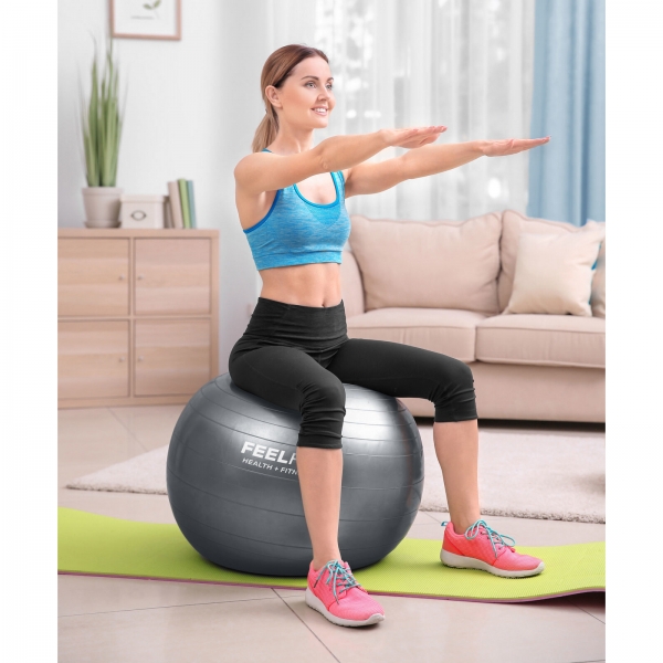 Minge pentru fitness, yoga, exercitii gimnastica, diametru 65 cm, gri, Feel Fit FF018