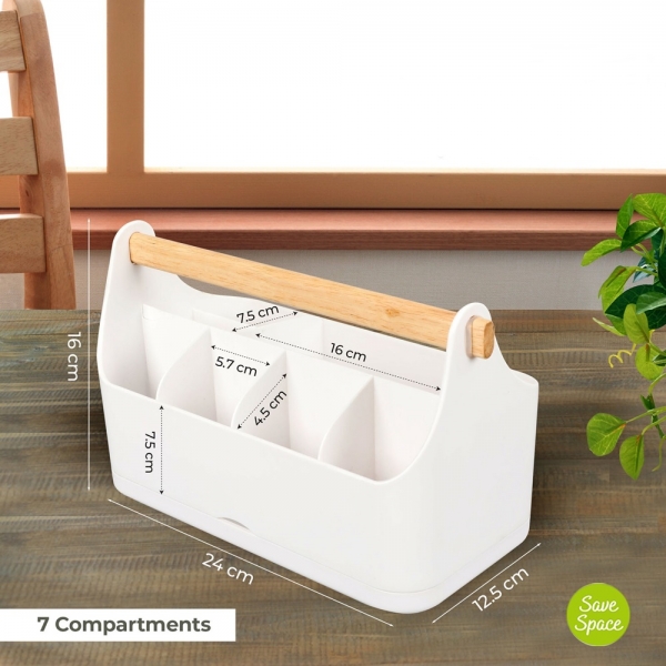 Organizator cu 7 compartimente pentru cosmetice / ustensile de bucatarie, alb, Vivo, 220519-5
