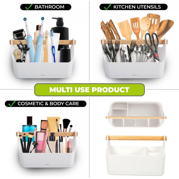 Optiuni multiple de depozitare - accesorii pentru barbierit, periute de dinti, ustensile de bucatarie, accesorii pentru cosmetice si machiaj.