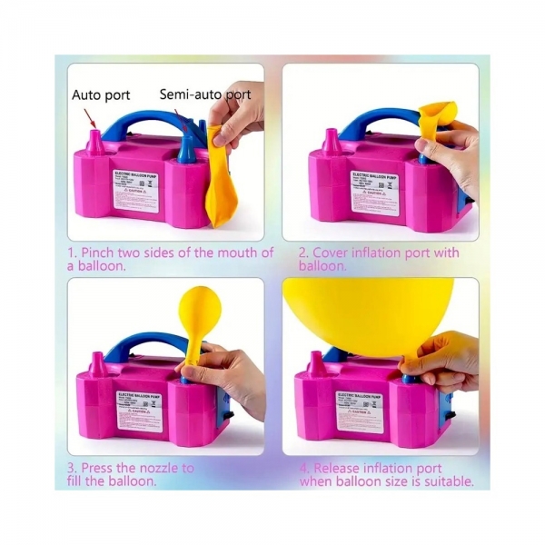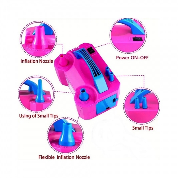 Pompa electrica dubla pentru umflat baloane cu aer, 220V, 600W, roz/albastru, Vivo 73005