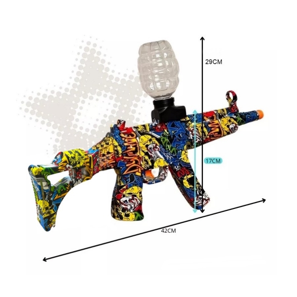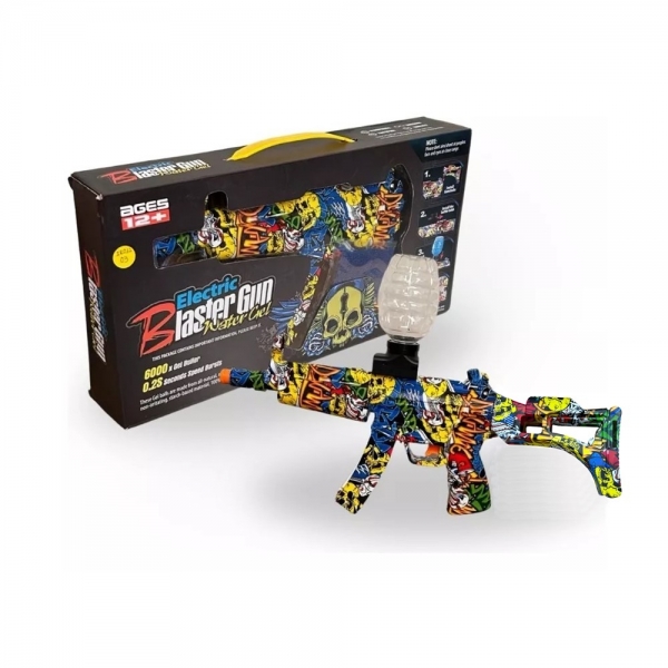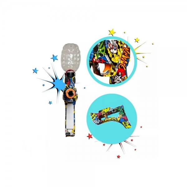 Blasterul cu bile de gel este o jucarie care lanseaza bilele de gel ce se sparg imediat dupa ce au intalnit un obstacol, formand un morman de particule mici.