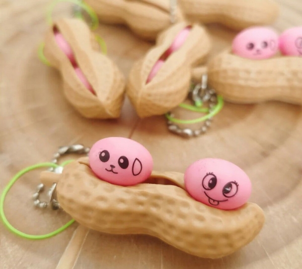 Set 2 jucarii antistres, breloc, in forma de aluna, crem, 6 cm, Vivo FIGURINA-ALUNA