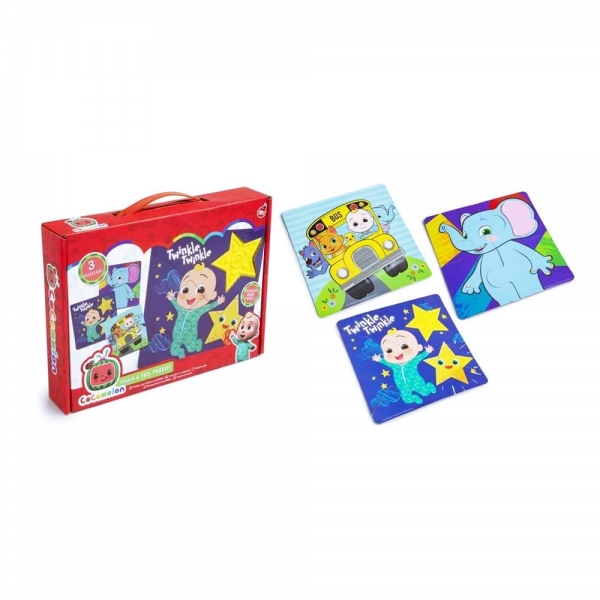 Set 3 puzzle pentru copii, Touch and feel, multicolor, 21 x 21 cm, Cocomelon 96-0050
