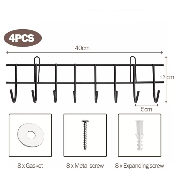Solutie de depozitare reglabila: Pachetul include patru carlige de 40 cm care pot fi atasate de perete in configuratii cuprinse intre 40 si 160 cm, in functie de nevoile dumneavoastra de depozitare.