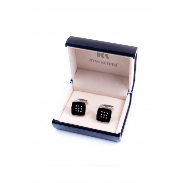 Set butoni camasa, cu cristale, patrat, Negru, Ryan Keeper, S4
