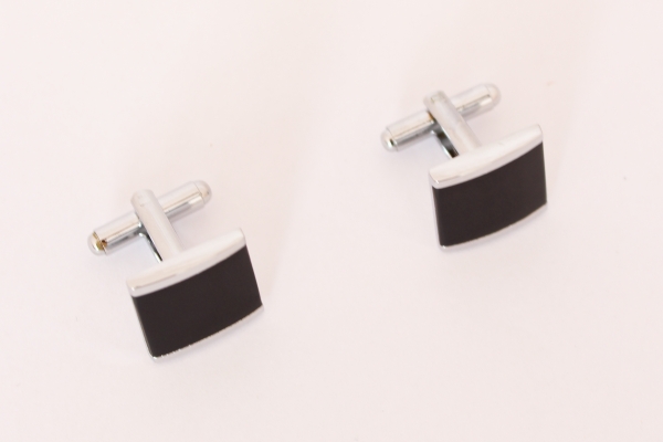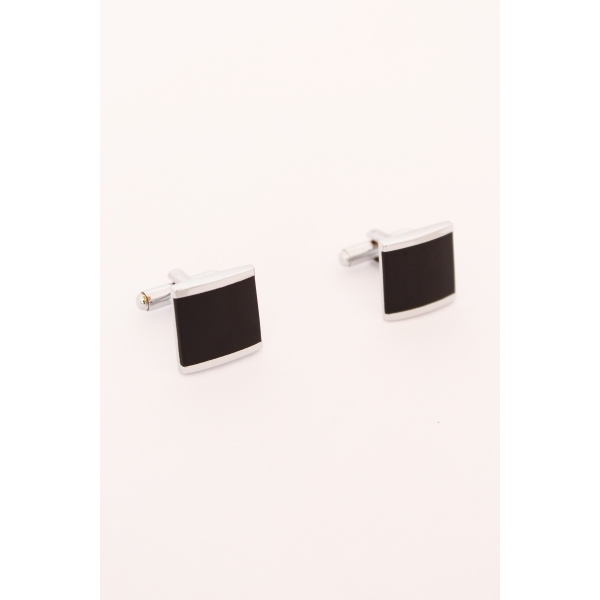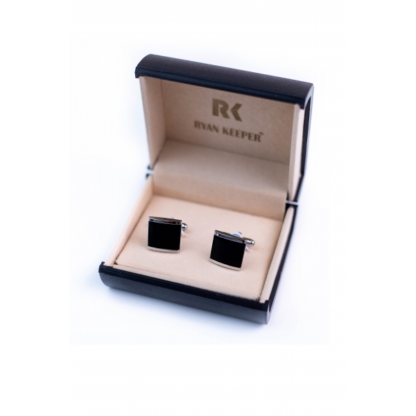 Set butoni camasa elegant, Argintiu/Negru, patrat, 15 mm, Ryan Keeper, A4