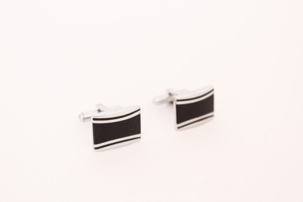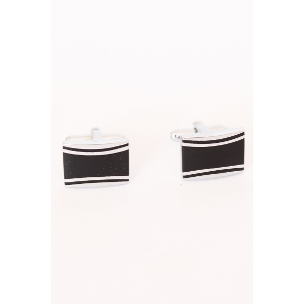 Set butoni camasa elegant, Negru-Argintiu, dreptunghi, Ryan Keeper, A1
