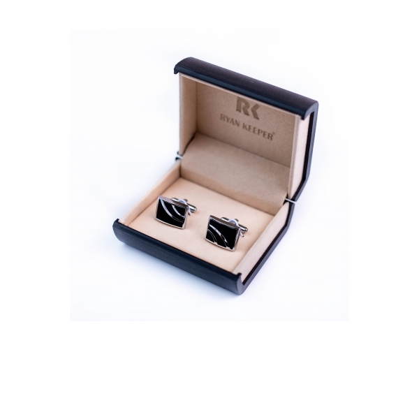 Set butoni camasa, stilat, Negru-Argintiu, dreptunghi, Ryan Keeper, A7