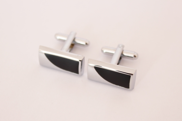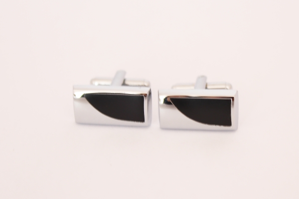 Set butoni camasa, stilat, Negru-Argintiu, dreptunghi, Ryan Keeper, A9