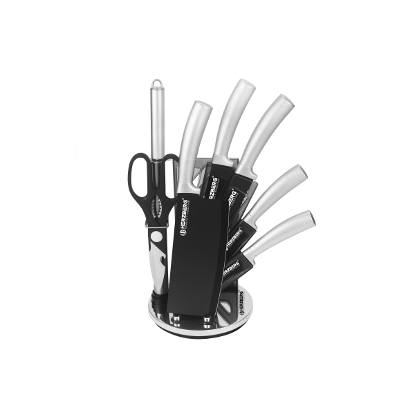 Set cutite 8 piese cu suport din acril Herzberg, argintiu, HG-MSN8SLV