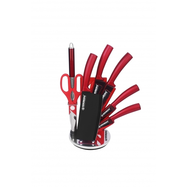 Set cutite 8 piese cu suport din acril Herzberg, rosu, HG-MSN8RD