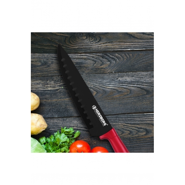 Herzberg HG-MSN8RD este un set de cutite de baza din otel inoxidabil din 8 piese, cu un strat antiad