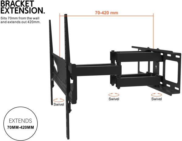 Suport de perete LCD / Plasma cu un profil de dimensiuni reduse Se extinde la exterior de la 140m
