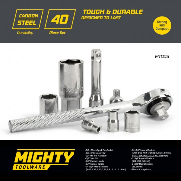 - 1/4" drive imperial sockets: 5/32", 3/16", 7/32", 1/4", 9/32", 5/16", 11/32", 3/8", 13/32", 7/16", 15/32", 1/2"